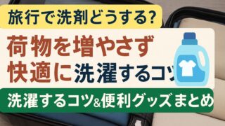 旅行の準備って、わくわくする反面「持ち物どうしよう…」と悩みますよね。中でも「洗剤って持っていくべき?」「旅先で洗濯って本当に必要?」と迷う方は多いはず。 この記事では、そんなお悩みに寄り添いながら、洗剤の選び方から持ち運びの工夫、洗濯しな...
