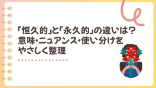 「恒久的」と「永久的」の違い、すぐに説明できますか? どちらも“ずっと続く”という意味に見えるため、文章を書いているときやビジネスメールを作っているときに、ふと手が止まってしまうことがありますよね。「なんとなく似ているけれど、本当はどう違う...
