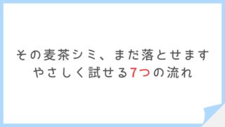 「気づいたら麦茶のシミが残っていた…」 そんなとき、まずはこの記事の手順をそのまま試してみてください。 時間がたったシミでも、順番を守ってやさしく対処すれば、目立たなくできる可能性は十分あります。大切なのは力ではなくやり方です。 このページ...