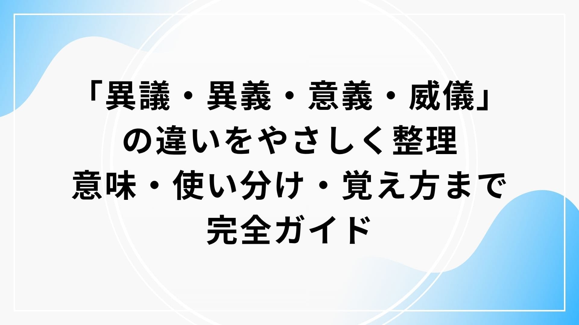 「異議・異義・意義・威儀」の違いが気になって検索されたのではないでしょうか。