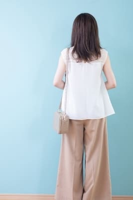 • 上品なブラウスやシャツが多い → ワイドパンツが相性抜群