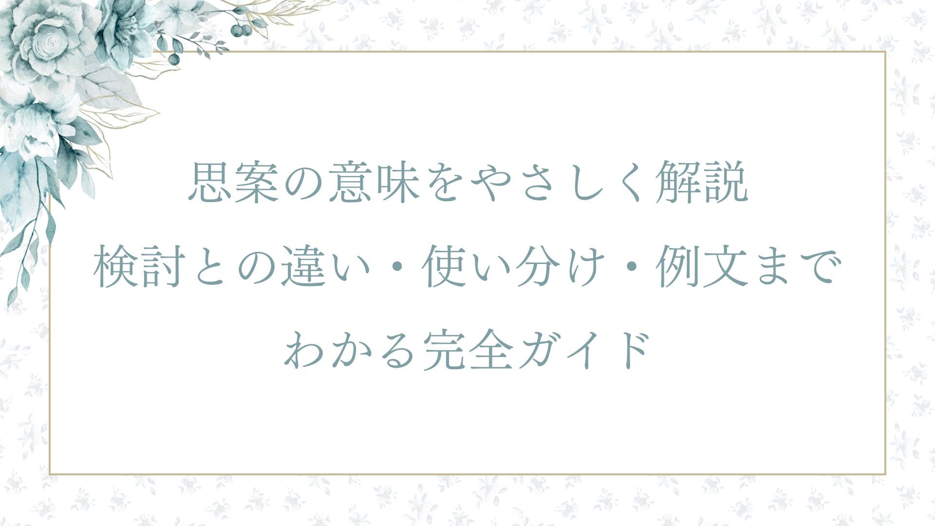 この記事では、「思案」の意味をやさしく整理しながら、「検討」との違い、使い分けのコツ、すぐ使える例文までわかりやすくご紹介します。