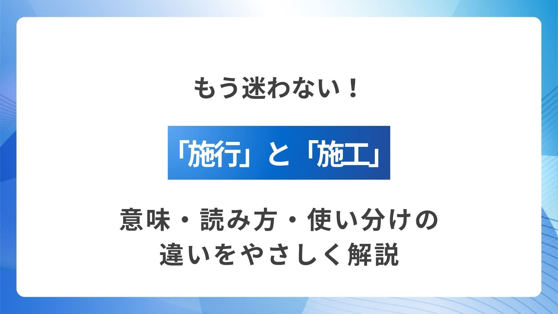 「施行」は主に「しこう」、「施工」は主に「せこう」と読みますが、音がよく似ているため、とても紛らわしい言葉ですよね。