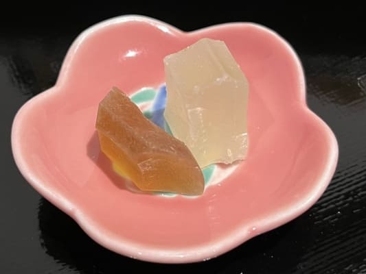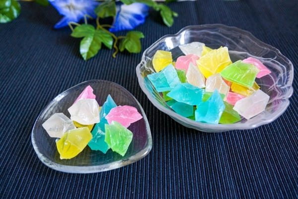 琥珀糖は、表面がシャリッとして中がぷるんとした食感が特徴の和菓子です。